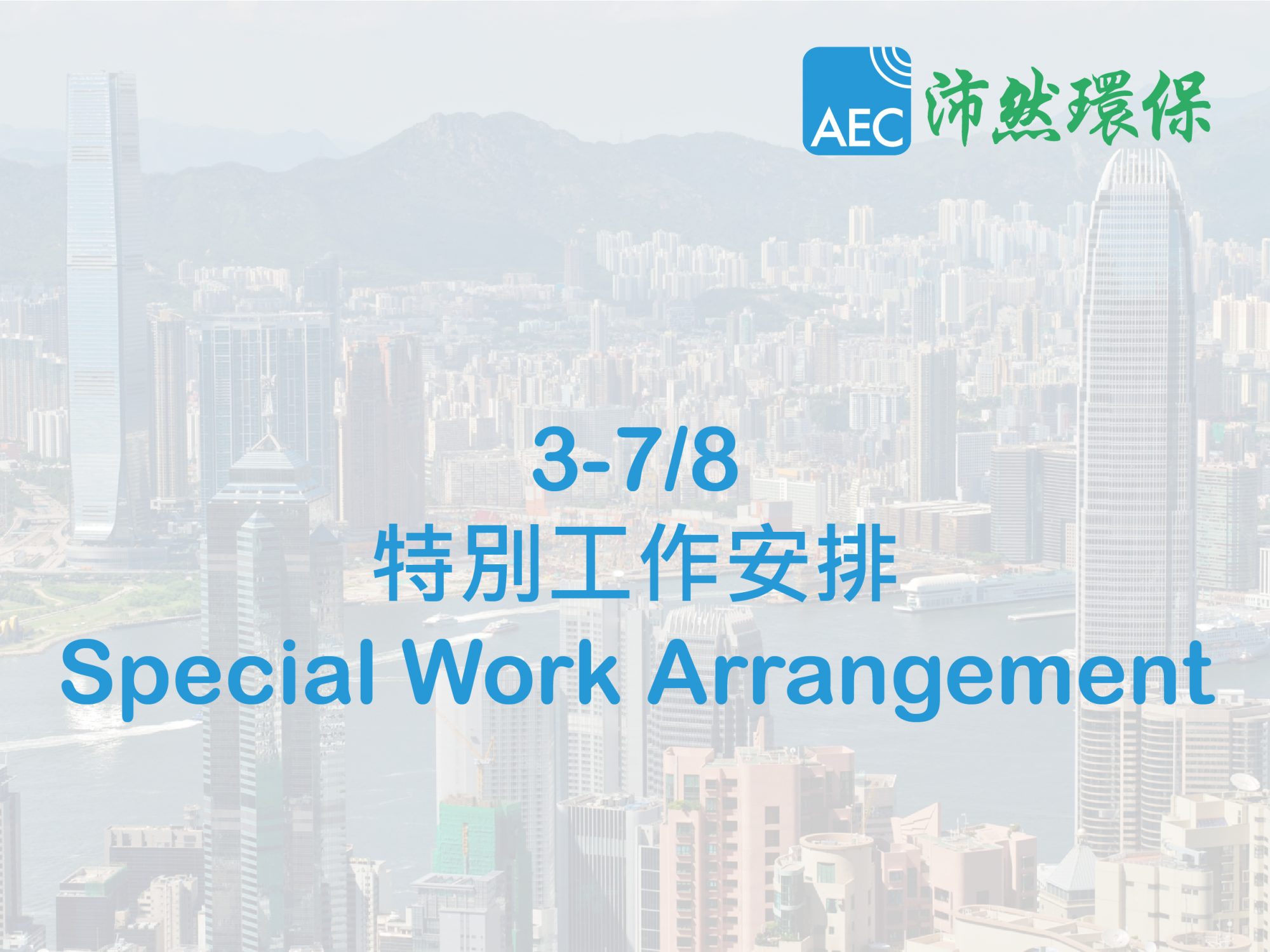 In view of the latest development of COVID-19, AEC Group’s work-from-home arrangement for staff members will be extended to 7 Aug (Fri).